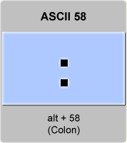 To get a colon, hold down the alt key, and without releasing it, type 5 and 8 in turn.